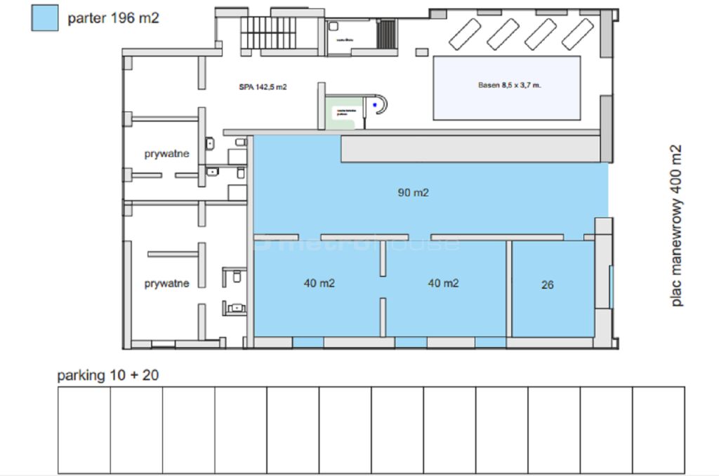 Na terenie miejsca parkingowe. 10miejsc parkingowych w cenie najmu , pozostałe dodatkowo płatne.